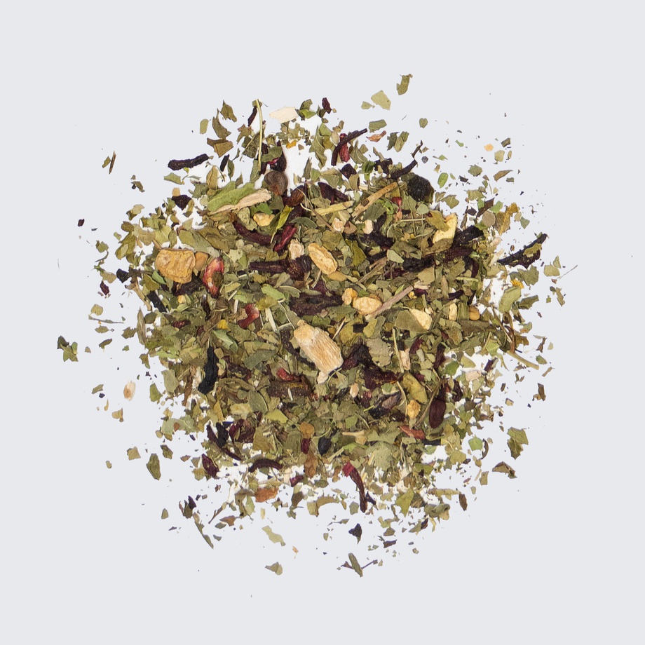 Packed with a host of exotic ingredients known for their cleansing and beautifying properties. Enjoy a delightful mix of sensations from earthy and floral to gingery and spicy. This herbal tea has a base of Mediterranean spearmint, sub-Himalayan moringa plant and yerba mate grown in the northern Argentinian region of Corrientes.